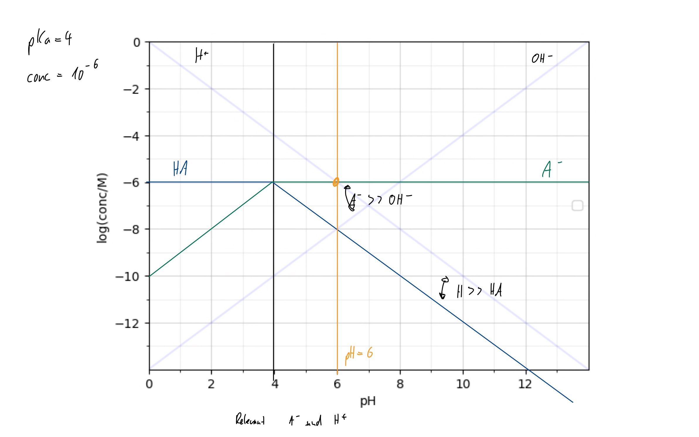 Wann ist was vorhanden? Kreuzung bei pKa (why? => Gleich viel im mwg einsetzen tada!)