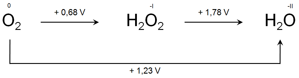 Wenn eine Spezies weniger stabil ist, als seine “Zerfallsprodukte” dann gibt es einen Redox “Zerfall”. Dies nennen wir disproportionierung.