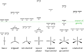 Dies führ zu unterschiedlichen Energien in den Orbitalen. Die Elektronen ums Atom bewegen sich dann in diese tieferen Orbitale. Dadurch ist die Geometrie des Komplexes grösstenteils durch die Anzahl Elektronen ums Zentralatom gegeben.