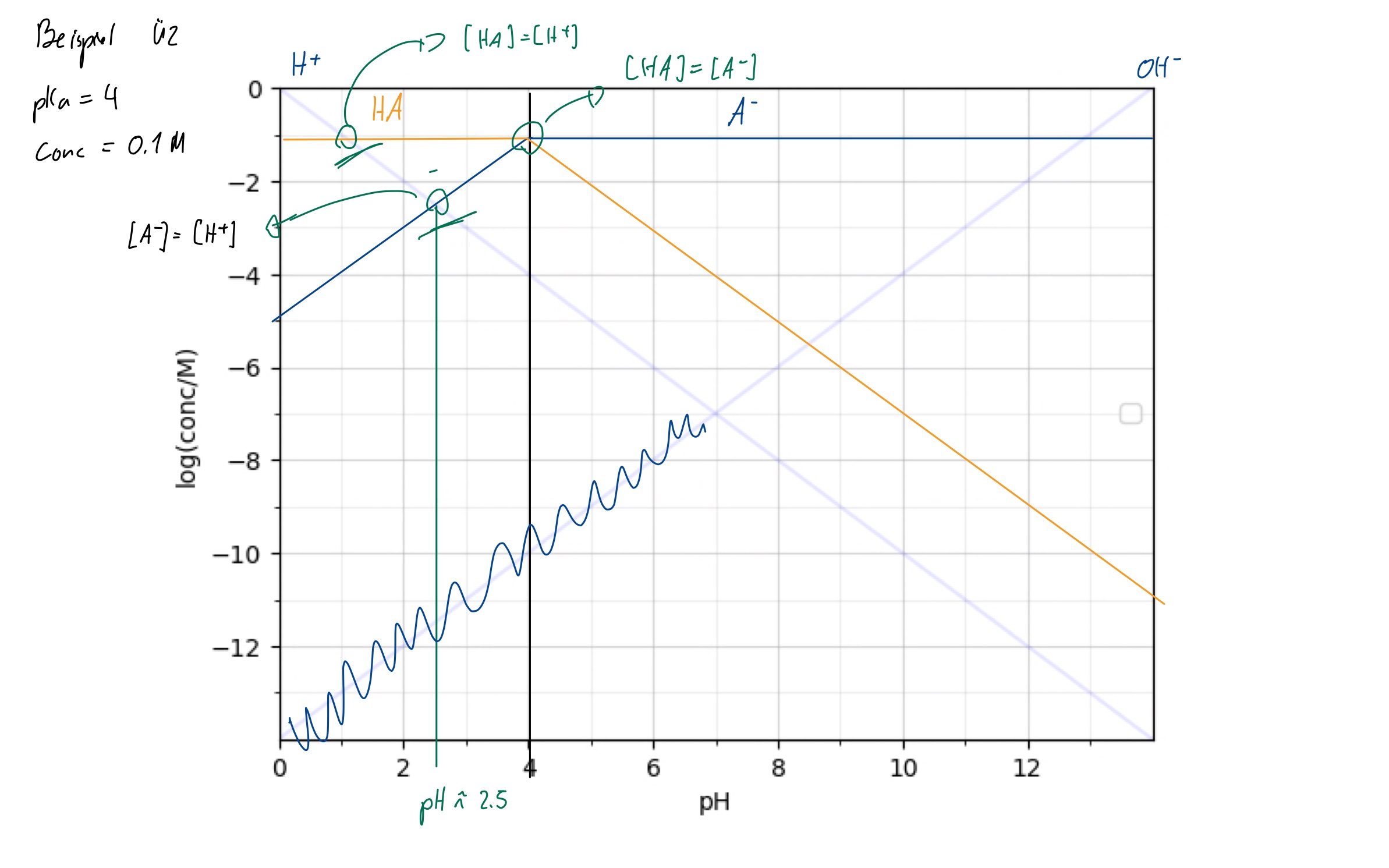 Wann ist was vorhanden? Kreuzung bei pKa (why? => Gleich viel im mwg einsetzen tada!)