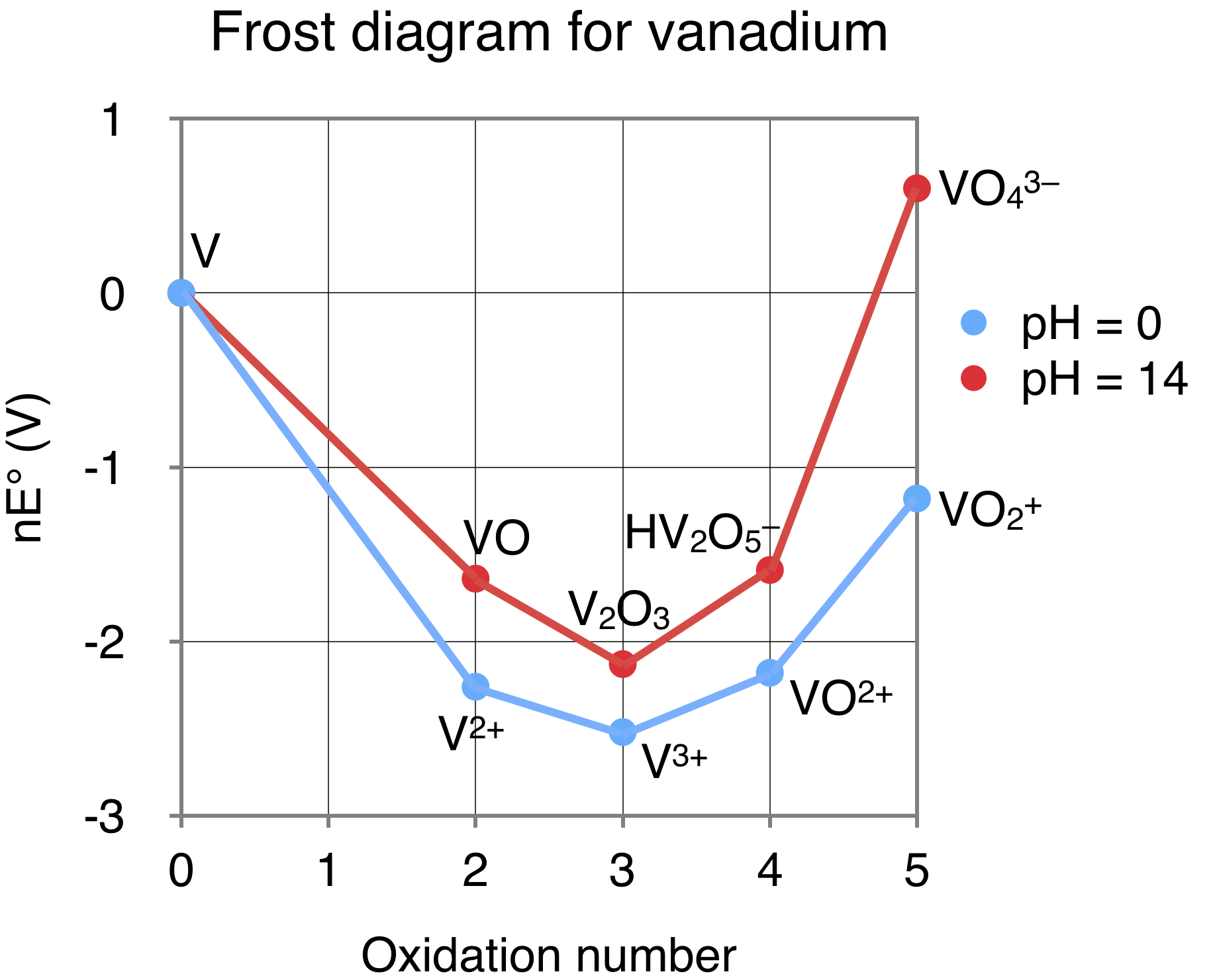 Wir betrachten dazu das Frost-diagramm von Vanadium